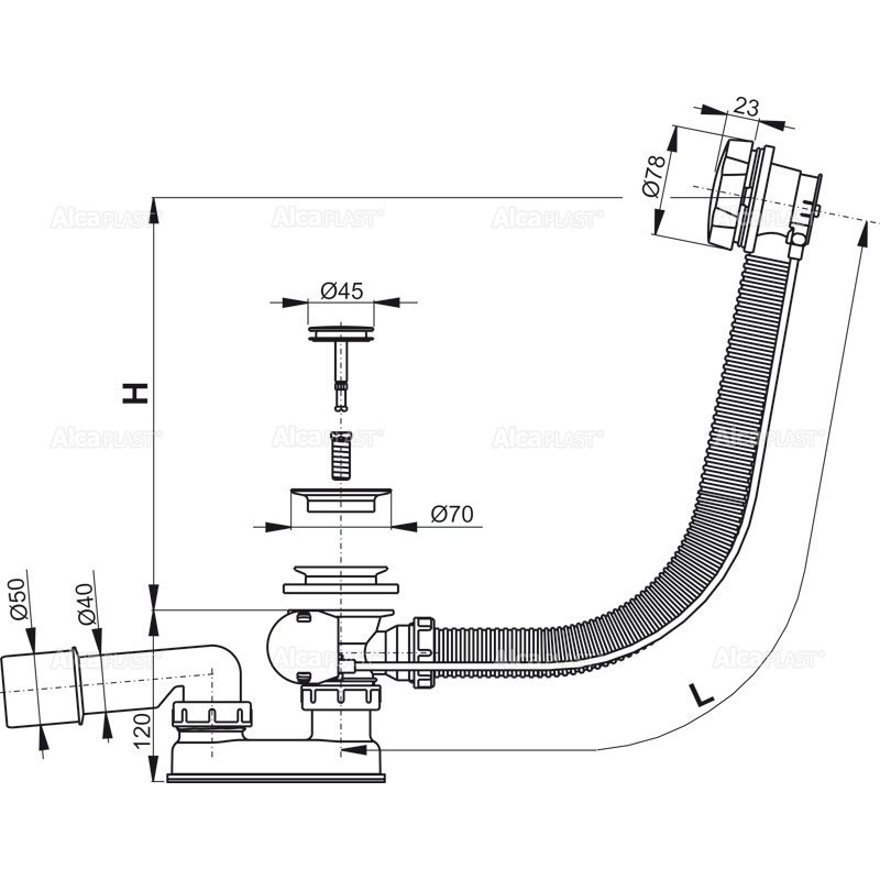 Alcaplast Syfon wannowy z korkiem automat metal (długośc 80 cm) A55K 80