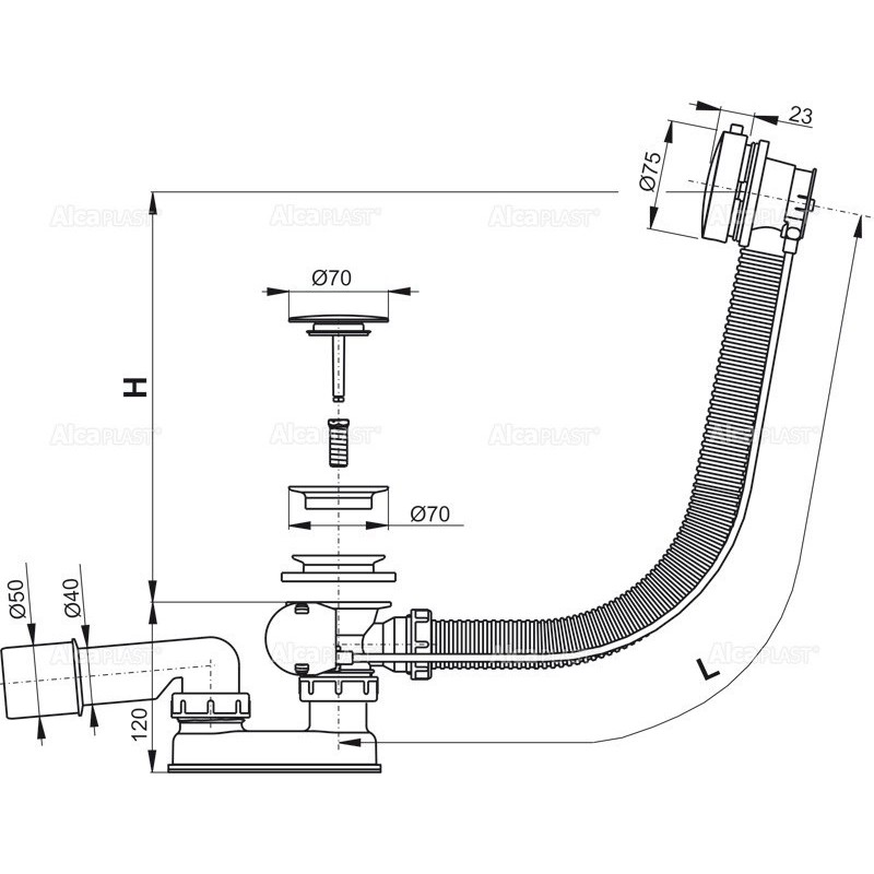 Alcaplast Syfon wannowy z korkiem automat metal (długośc 100 cm) A551KM 100