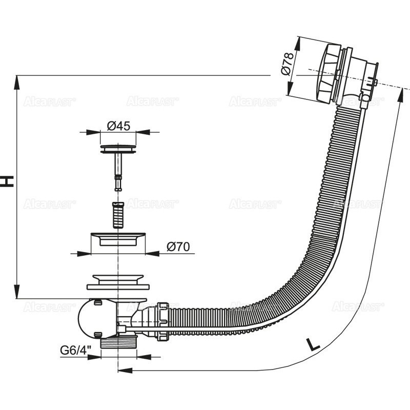 Alcaplast Syfon wannowy z korkiem automat metal A56K