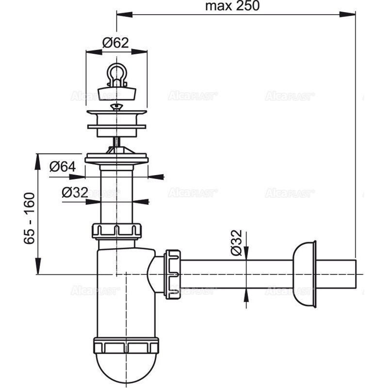Alcaplast Syfon umywalkowy Ø32 z plastikowym sitkiem Ø63 A420