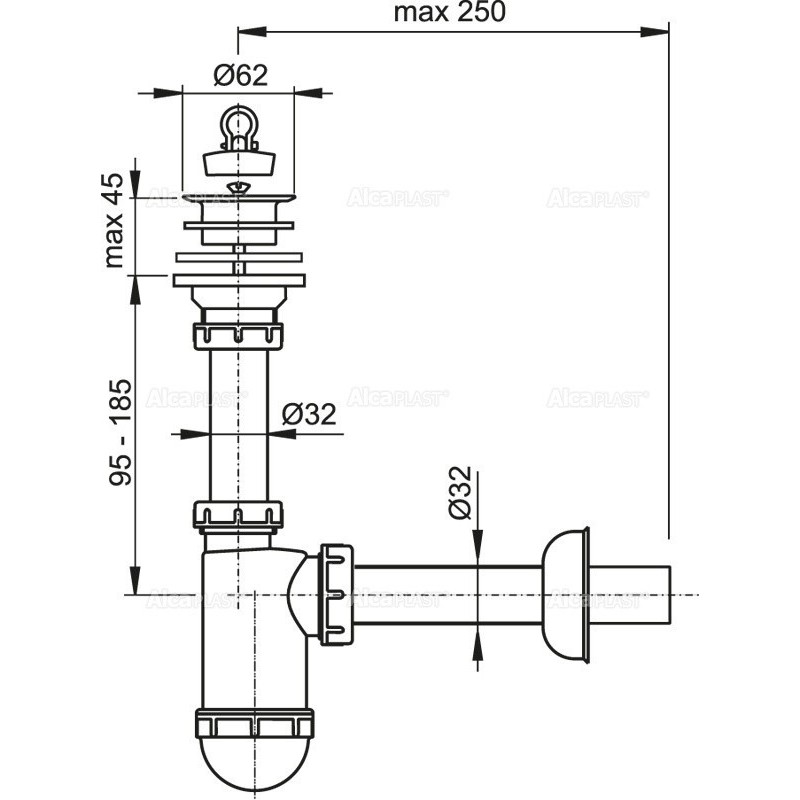 Alcaplast Syfon umywalkowy Ø32 z plastikowym sitkiem Ø63 A421