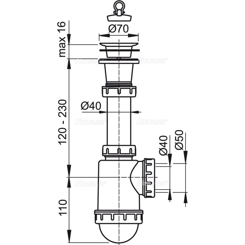Alcaplast Syfon zlewozmywaka sitko plastikowe Ø70 A442 Ø50/40