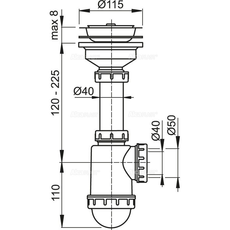 Alcaplast Syfon zlewozmywaka sitko nierdzewne Ø115 A446 Ø50/40