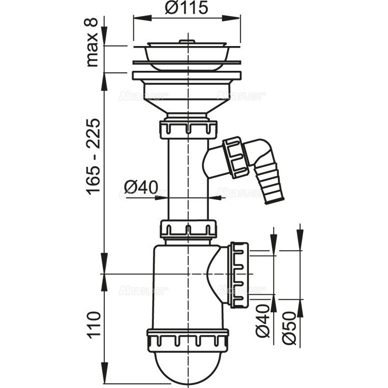 Alcaplast Syfon zlewozmywaka z podłączeniem pralki sitko nierdzewne Ø115 A446P Ø50/40