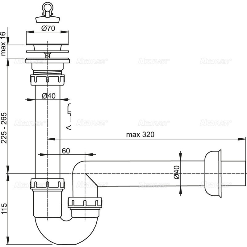 Alcaplast Syfon zlewozmywaka rurowy Ø70 A800 Ø40