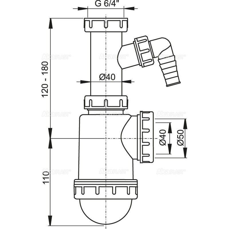 Alcaplast Półsyfon do zlewu z nakrętką 6/4" i podłączeniem A443P Ø50/40