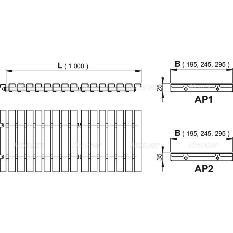 Alcaplast Ruszt przelewowy bez antypoślizgu (wysokość 25mm, szerokość , 245mm, długośc 1000mm) AP1-245/1000