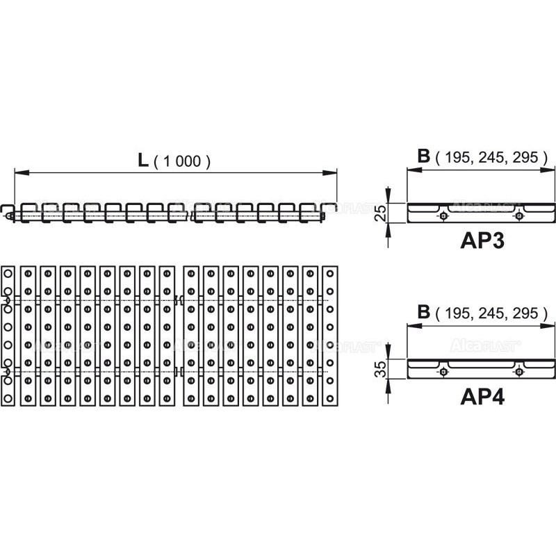 Alcaplast Ruszt przelewowy z antypoślizgiem (wysokość 25mm, szerokość , 245mm, długośc 1000mm) AP3-245/1000
