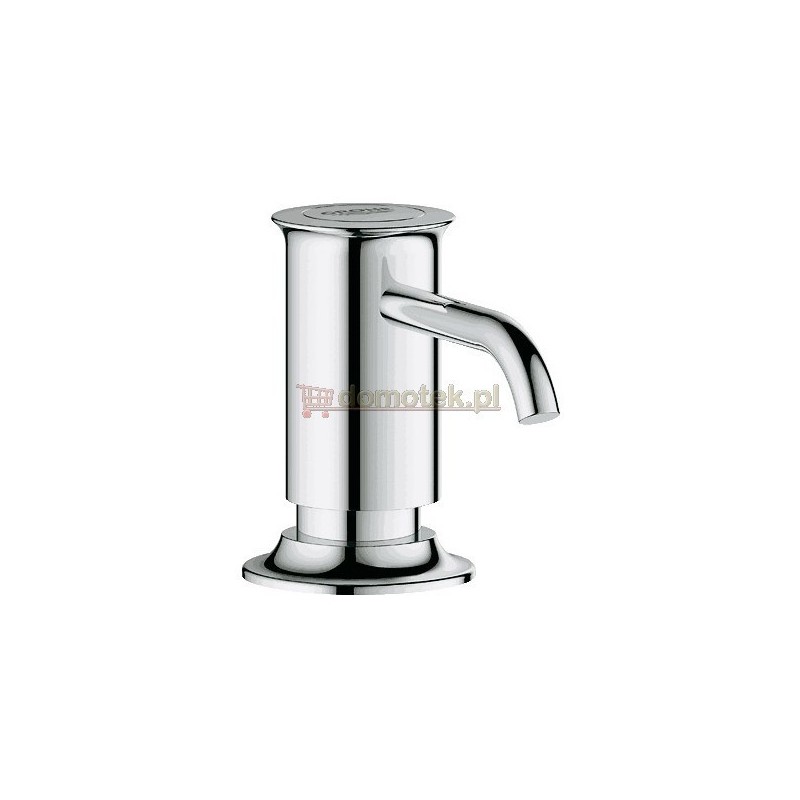 Dozownik Authentic firmy GROHE, część nad blatem (widoczna) wykonana z metalu, chromowana