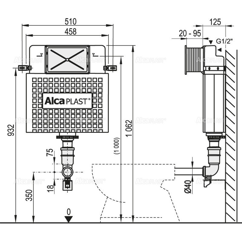 Spłuczka podtynkowa do misek stojących na podłodze Alcaplast Basicmodul A112/1000