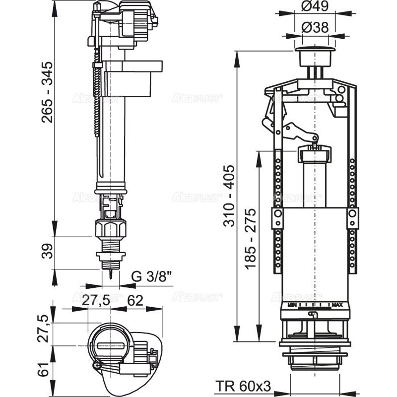 Alcaplast Komplet montażowy z przyciskiem STOP SA2000S 3/8"
