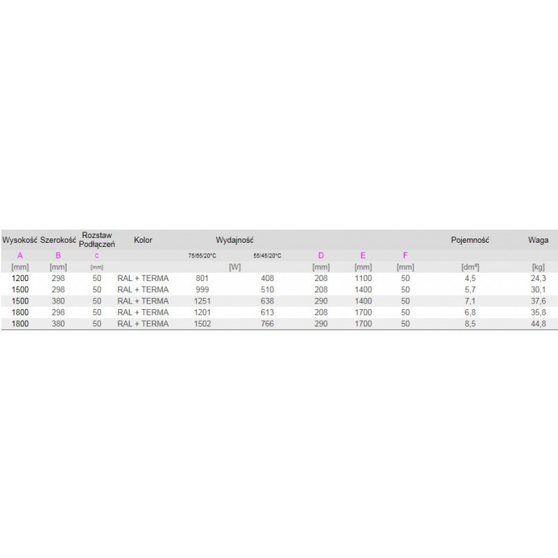 | Wyposażenie: | Odpowietrznik 1/4", konsole mocujące MKT, umożliwiające regulowanie dystansu grzejnika od ściany w zakresie 8mm oraz pozycji na ścianie w zakresie 4mm. |