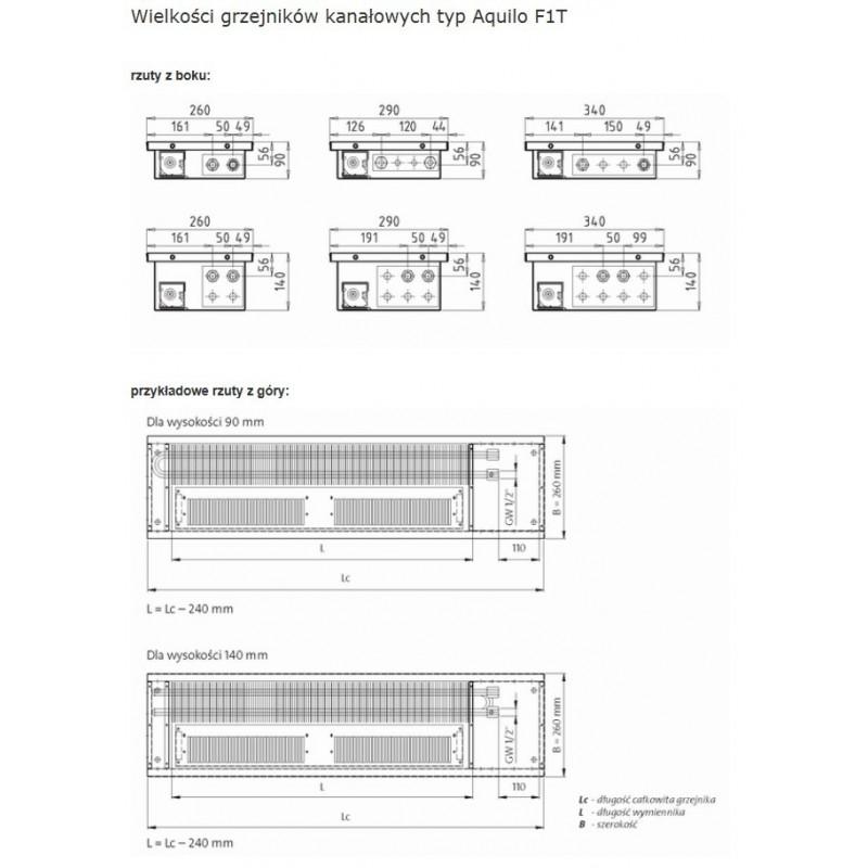 Grzejniki kanałowe Aquilo F1T przeznaczone są do montażu w podłogach ogrzewanych pomieszczeń.