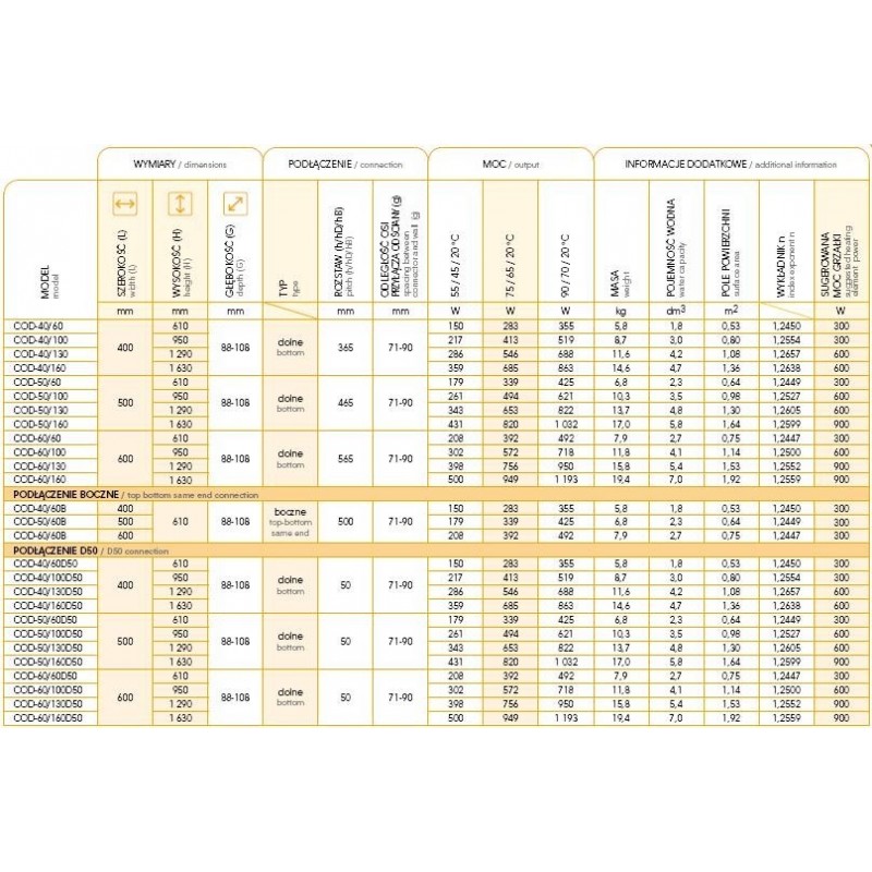 • Grzejnik dostępny również w wersji z podłączeniem bocznym B500