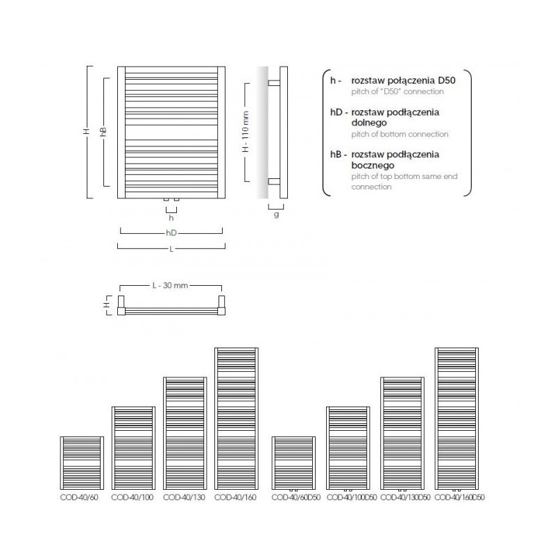 • Grzejnik dostępny również w wersji z podłączeniem bocznym B500