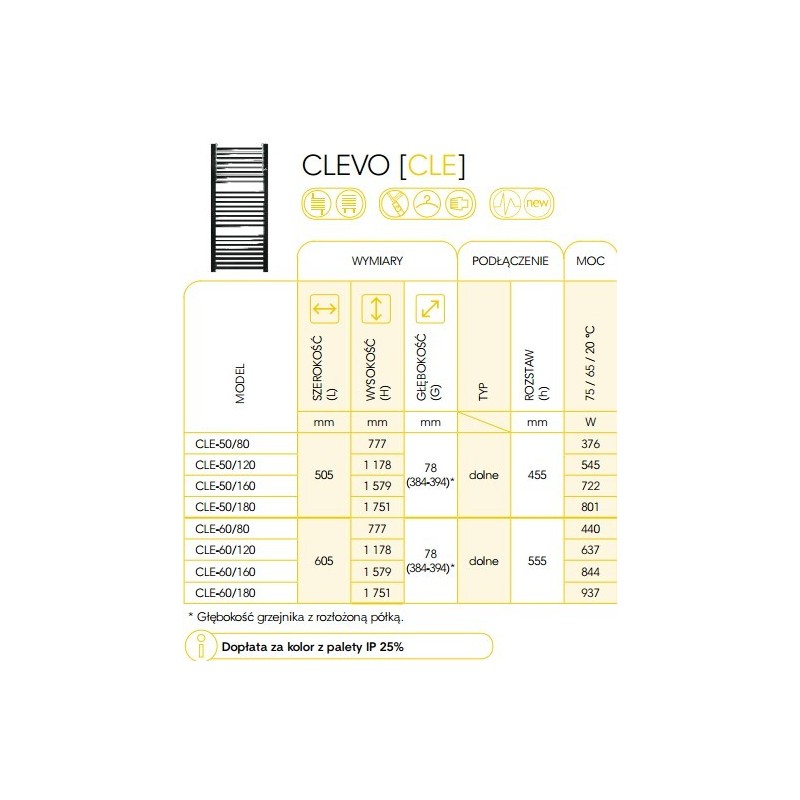 Możliwość zamówienia grzejnika i półki w dwóch różnych kolorach z palety IP.