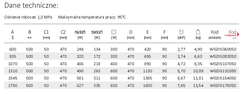 | Inne: | Grzejnik dostępny we wszystkich kolorach RAL oraz kolorach specjalnych TERMA, w tym grube struktury i sanitarne –brak dopłaty za kolor inny niż biały |