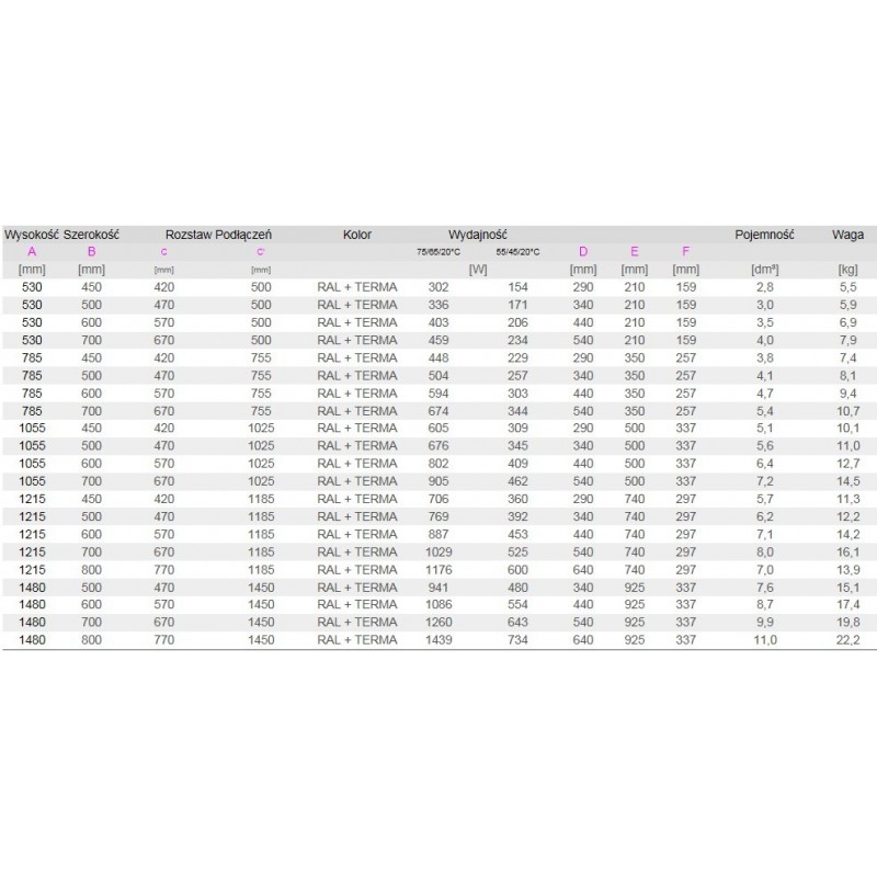 | Wykończenie powierzchni: | farba proszkowa, standardowy kolor – biały, RAL 9016 (za wyjątkiem, w którym został określony inny). |