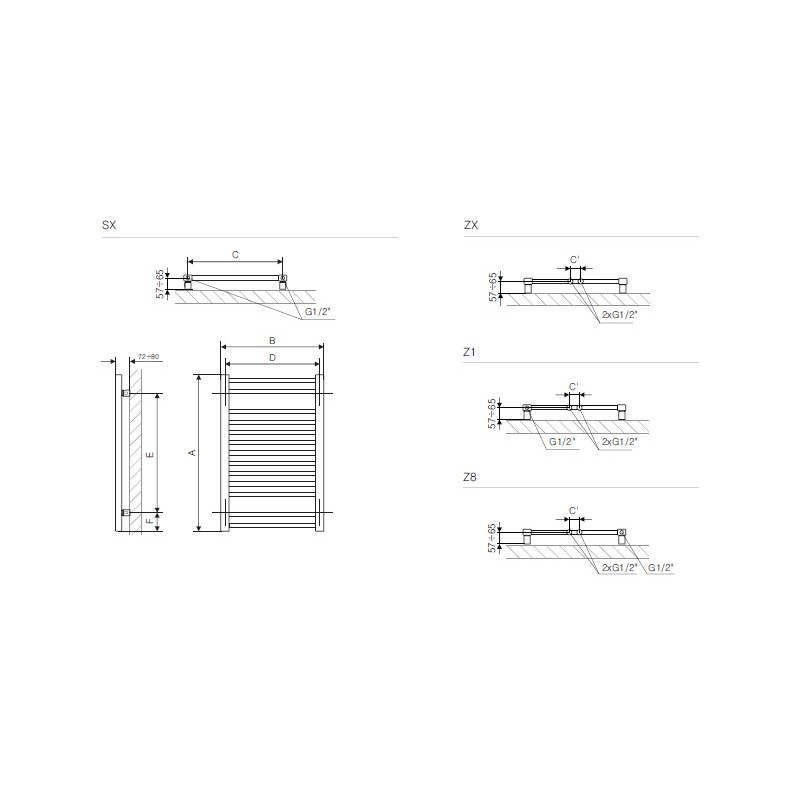 - SX (podłaczenie grzejnika bezpośrednio do grzejnika z wykorzystaniem zaworu z rurką zanurzeniową)