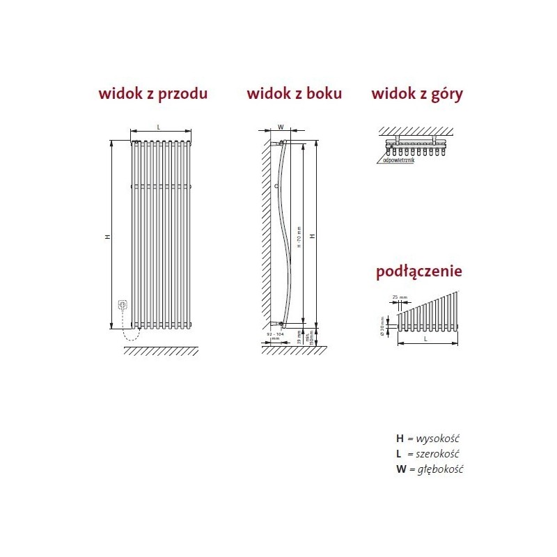 | Wyposażenie: | zawieszenia o regulowanej odległości grzejnika od ściany odpowietrznik ręczny średnicy 1/4” |