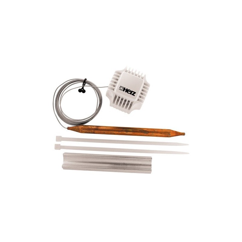 Głowica termostatyczna HERZ z czujnikiem powierzchniowym do ogrzewania podłogowego składająca się z termostatu z czujnikiem cieczowym, kapilary, czujnika powierzchniowego do rur i elementu mocującego czujnik do przewodó rurowych. Zakres nastaw 20 - 50 stopni. Długość kapilary 2 m.