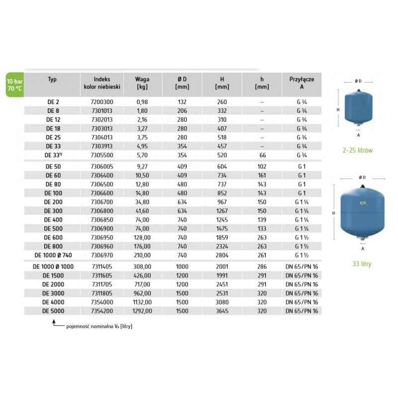 Reflex DE 8 naczynie przeponowe do instalacji c.o.i systemów chłodniczych niebieskie 7301013