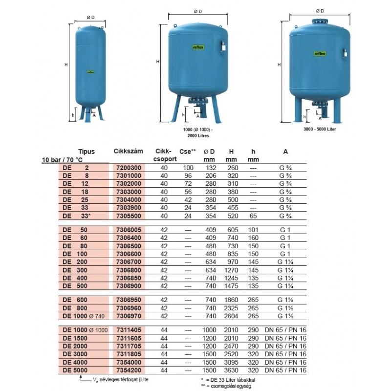 Reflex DE 33 naczynie przeponowe do instalacji c.o.i systemów chłodniczych niebieskie 7303900