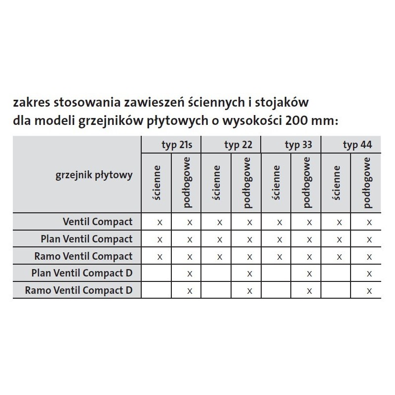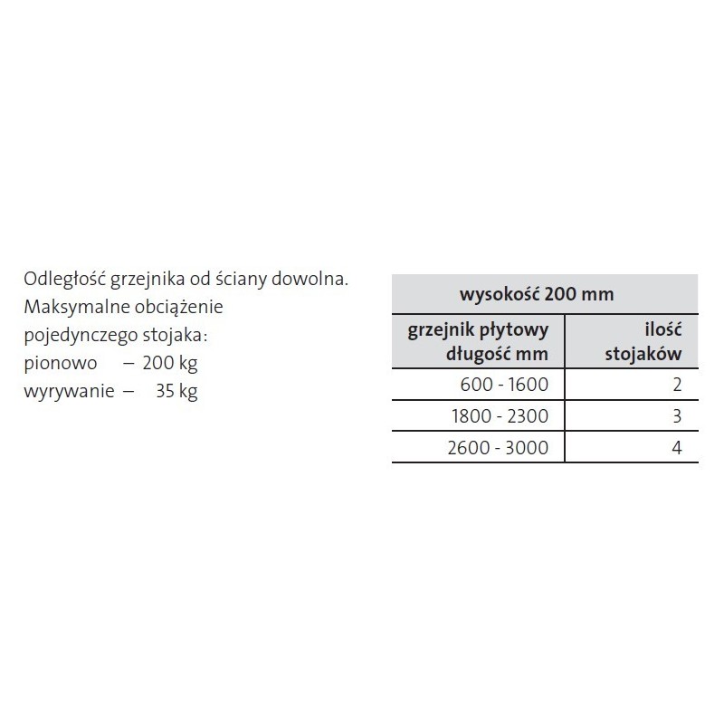 Stojak do grzejników płytowych o wysokości 200 mm: CV21s, FCV21s, FFCV21s, RCV21s, RRCV21s