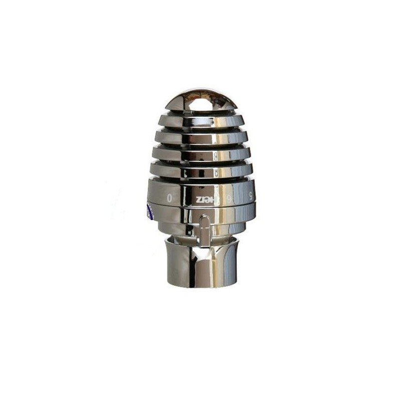 Głowica termostatyczna DE LUXE z czujnikiem cieczowym, mechaniczne zamknięcie (w położeniu 0), pierścień zabezpieczający i osłaniający, możliwość nastawy zabezpieczenia przed zamarznięciem przy ok. 6 stopniach, zakres nastaw temperatury 6-30 stopni. Głowica do wszystkich zaworów termostatycznych HERZ